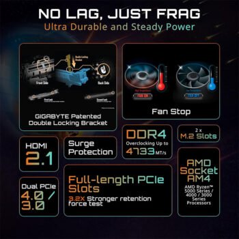 - AM4 Socket: Supports AMD Ryzen 5000 series/ 3rd Gen Ryzen/ 2nd Gen Ryzen/ 1st Gen Ryzen