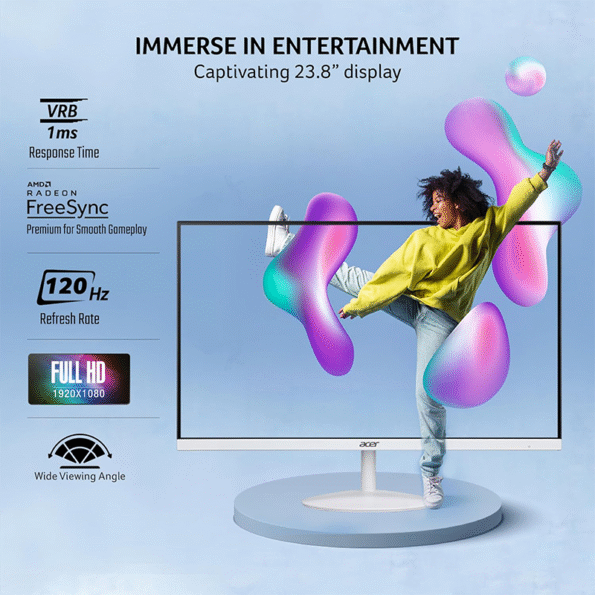 Acer SA242Y G0 23.8 Inch Full HD IPS Ultra Slim (7.2mm Thick) Backlight LED Monitor I Zero Frame I 120Hz Refresh I 1 MS VRB I Adaptive Sync I 1xHDMI 1xVGA I Stereo Speakers I Eye Care – White