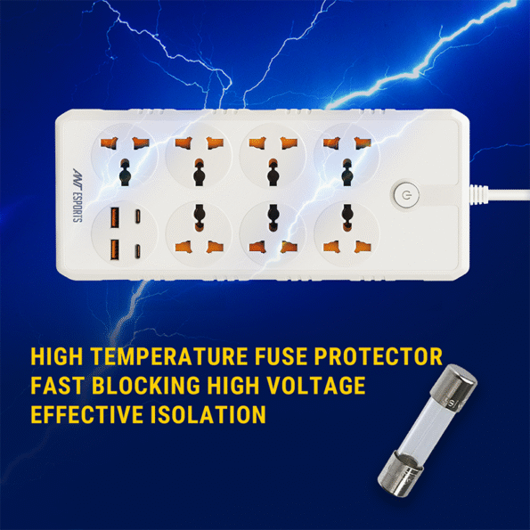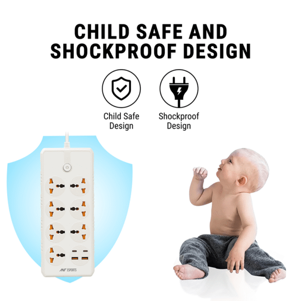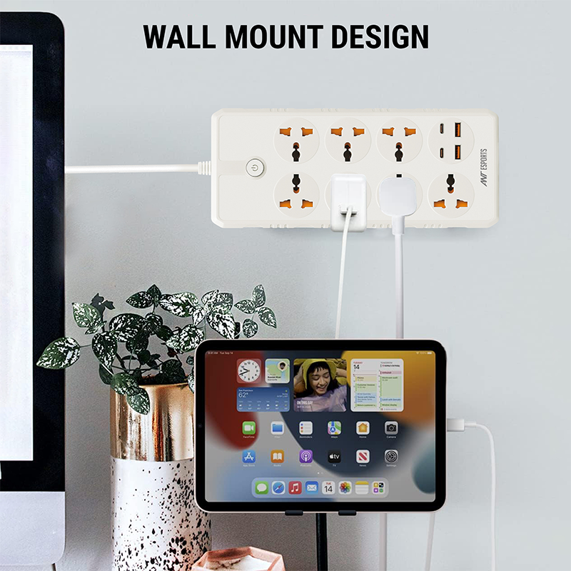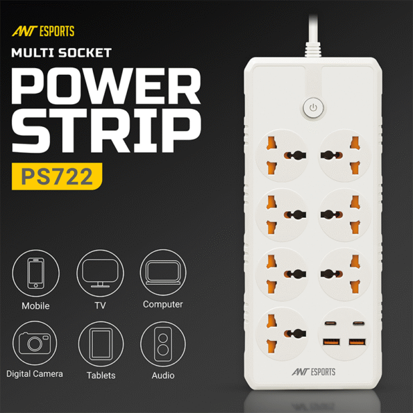 - Ant Esports PS722 comes with 7 universal power sockets and 2 USB-A and 2 Type-C (2.1A) for efficient multi-tasking for home / office, comes with safety shutters and grounding design ensure complete protection for you, your family, and your devices.