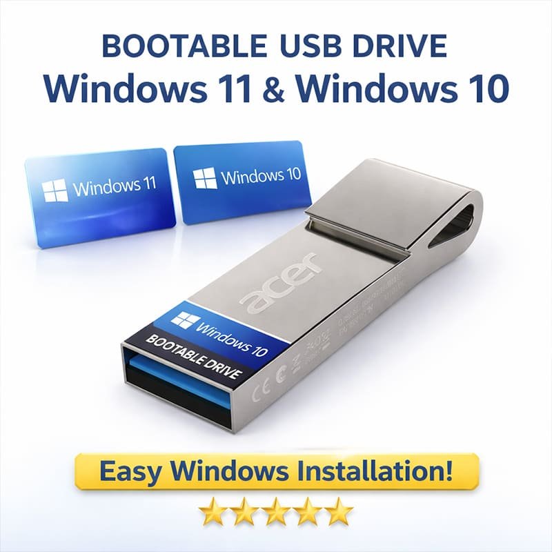 📦 What’s Included: * 📍 1 x High-Speed Bootable USB Drive (Pre-loaded with Win 10 & 11)