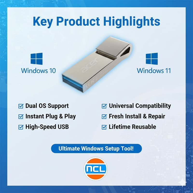 NCL Ultimate 2-in-1 Bootable USB Drive | Windows 11 & Windows 10 Dual OS Installation Media | Plug & Play