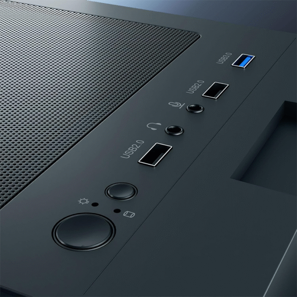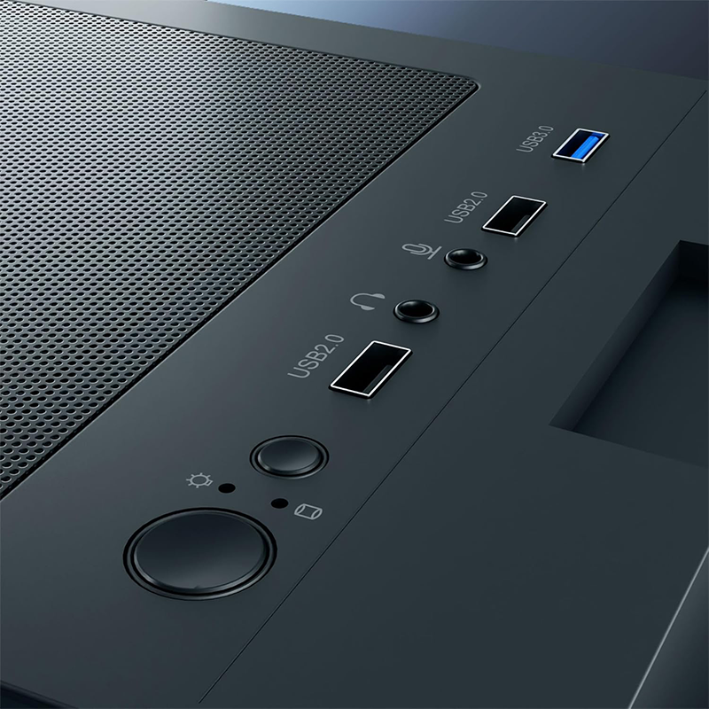 - Front Stylish RGB Strip with RGB Switch Button: Features a stylish RGB strip on the front panel, with a dedicated switch button for customizable lighting effects.