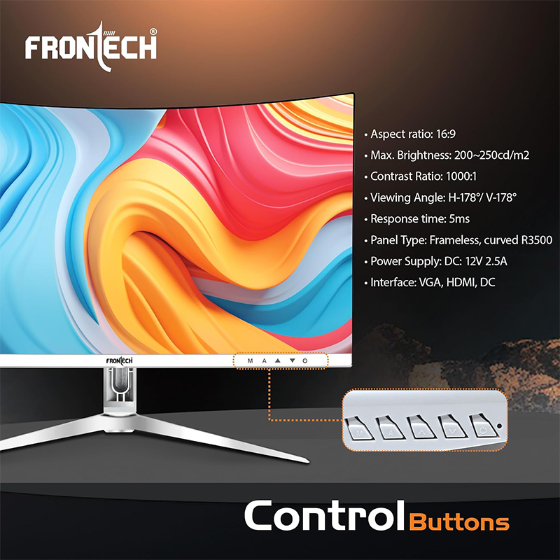 Frontech 22” Ultima Series Curved LED Monitor | 75Hz, 1920×1080 | 3500R Curve, Bezel-Less Design (MON-0079C)