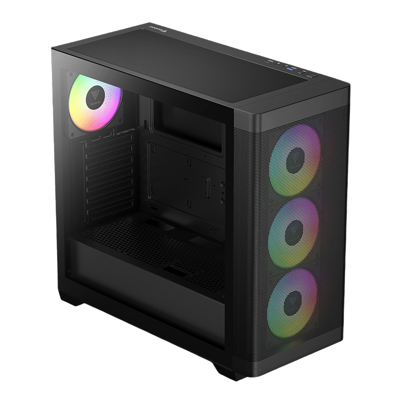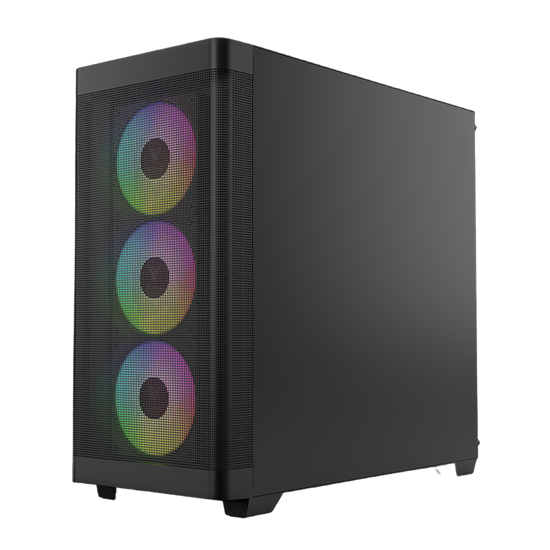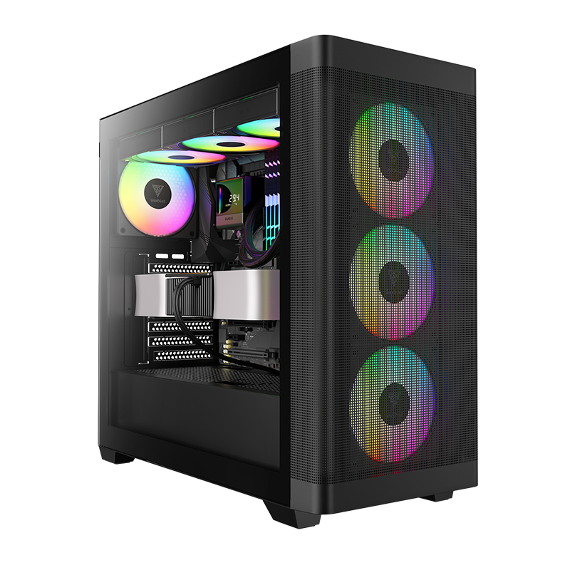 - Experience the captivating power of Dynamic RGB Illumination. Immerse yourself in a world of vibrant lighting effects that will elevate the visual appeal of your gaming setup to new heights. Let 3 x 120 mm RGB fans breathe life into your gaming environment, taking your gaming experience to a new level.