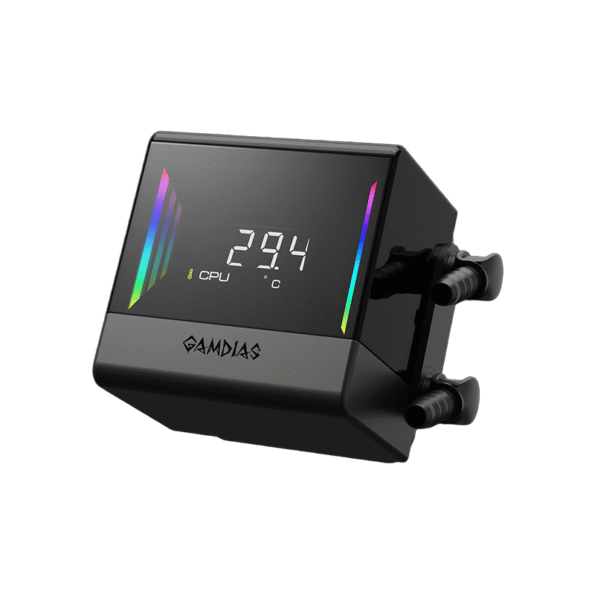 - CPU temperature display: The pump block features an integrated OLED display that shows the CPU’s real-time temperature, allowing for easy performance monitoring.