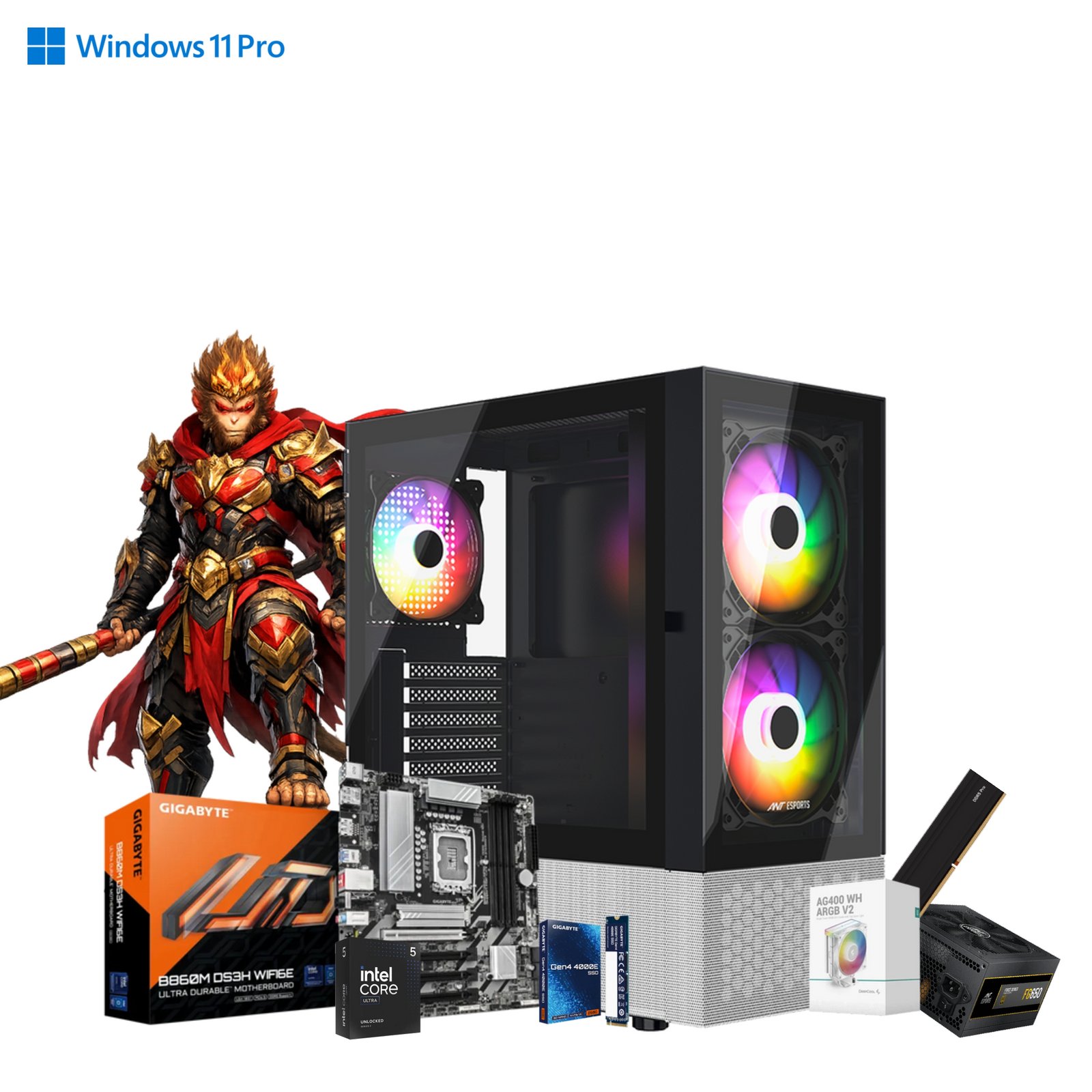 Intel Core Ultra 5 245K Prebuilt PC for Gaming & Workstation | Gigabyte B860M DS3H WiFi 6E Motherboard | Deepcool AG400 Air Cooler | 16GB DDR5 RAM | 500GB Gen4 NVMe SSD| 550W Gold PSU
