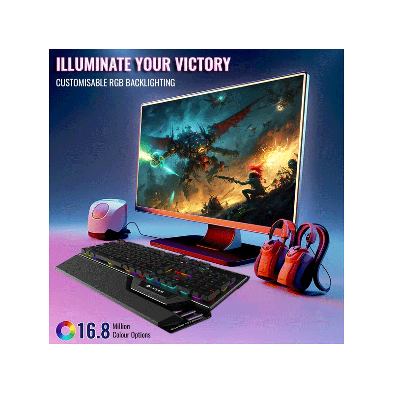 - Keyboard: Compact 94-key design with 4 hot keys and LED rainbow backlighting for a dynamic gaming experience.