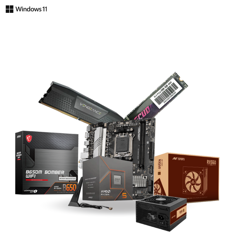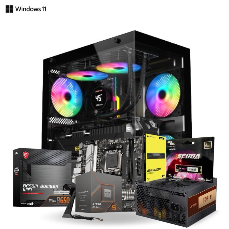 Prebuild PC For Gaming and Editing |AMD Ryzen 5 8500G With Radeon Graphics| MSI B650M Bomber Wi-Fi Motherboard | 16GB Ram DDR5 | 256GB Nvme SSD |550W |Prebuild CPU Tower PC with 3 Year Warranty