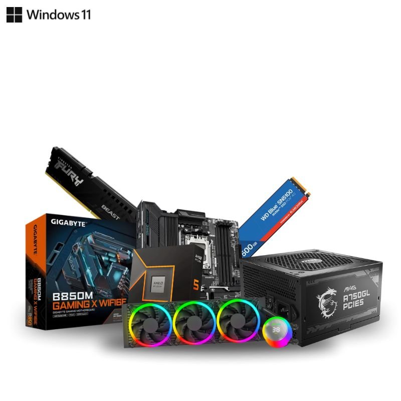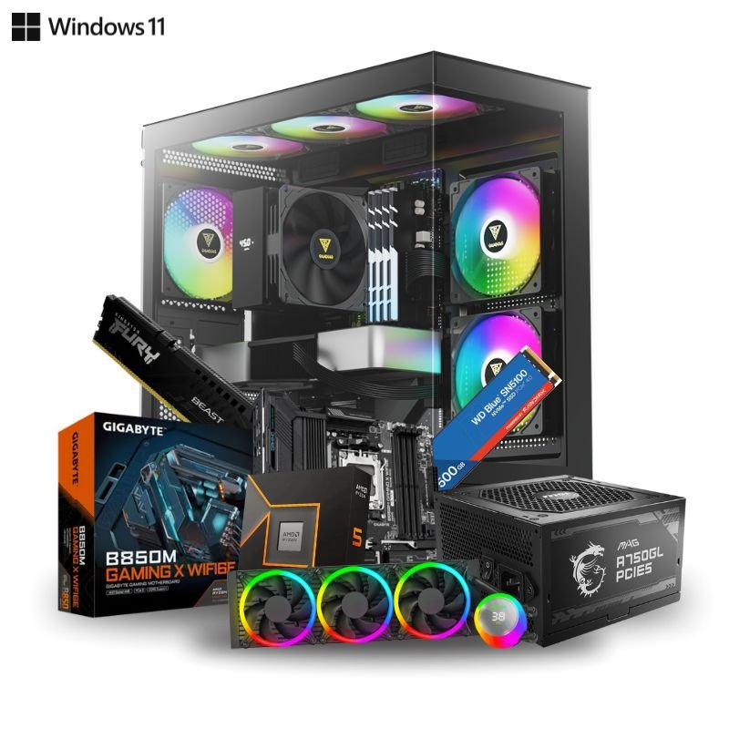 Prebuild PC For Gaming and Editing |AMD Ryzen 5 9600X With Radeon Graphics| AM5 Socket GIGABYTE B850M Gaming X WIFI6E M-ATX Motherboard | 8GB Ram DDR5 | 500GB Nvme SSD Blue | 360mm Liquid Cooler |MSI A750GL 750Watt SMPS |Prebuild CPU Tower Assembled