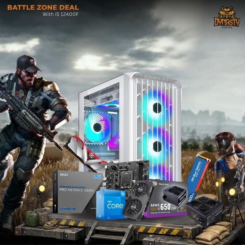 Prebuild PC | Intel Core i5 12400f | 16GB DDR4 Ram | 500GB Gen 4 Nvme SSD | 650W 80+ Bronze SMPS | Asus RX7600 8GB Graphics Card | RGB Gaming Cabinet with 3 Year Warranty