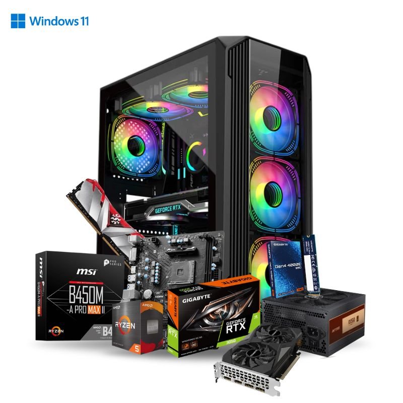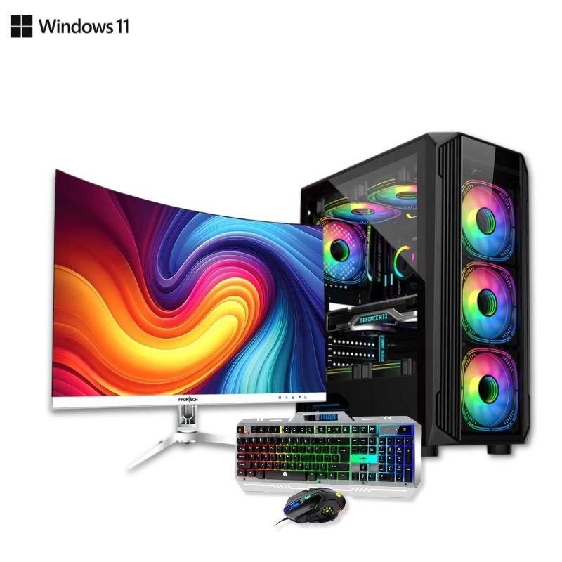 Get a complete high-performance desktop experience with the AMD Ryzen 5 5500 PC set. Built for gaming, video editing, streaming, and multitasking, this bundle includes a powerful CPU tower, curved monitor, and RGB accessories — backed by a 3-year warranty for total peace of mind.