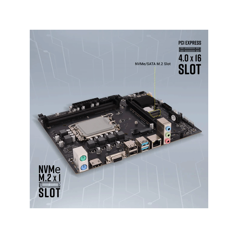 • Expansion Slots:PCIe x16 slot, M.2 NVMe slot