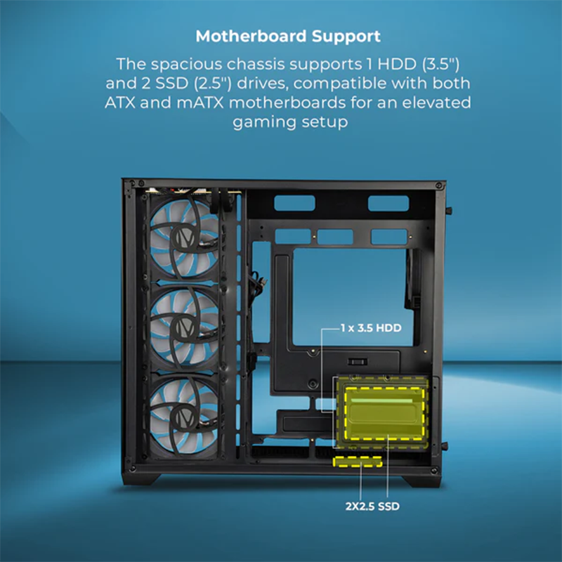 Premium Tempered-Glass Side Panel — Showcase your components, RGB fans, and cable-management like a pro.