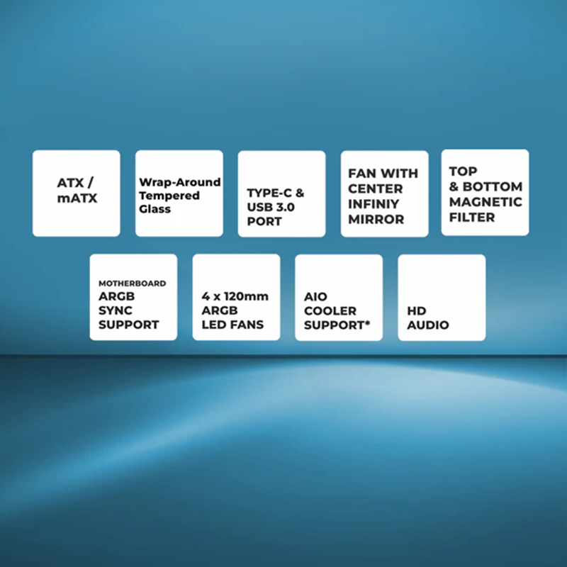 - Experience superior cooling performance with the ability to prevent overheating through efficient airflow and side glass panels.