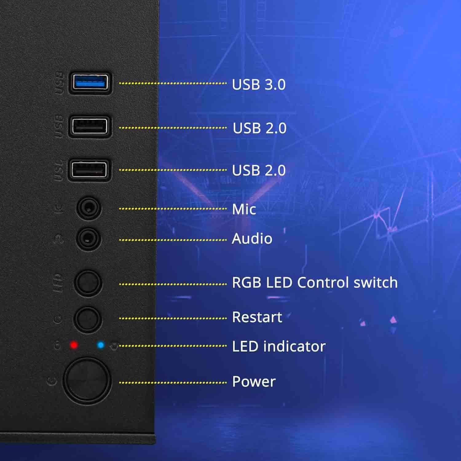 - Front mounted HD Audio & USB 2.0 Ports