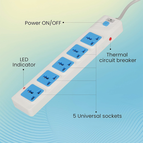 ZEB PS5500 Plus is a 2500 Watt power extension socket that comes with 5 high-quality universal sockets. The power extension socket also comes with a thermal circuit breaker & power ON/OFF button along with an LED indicator. It also has overload protection and can be wall-mounted as well.